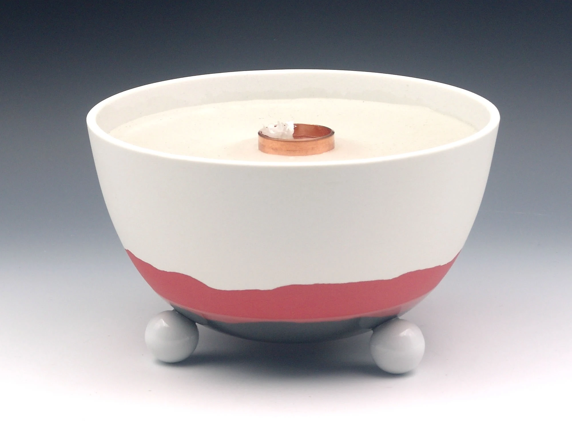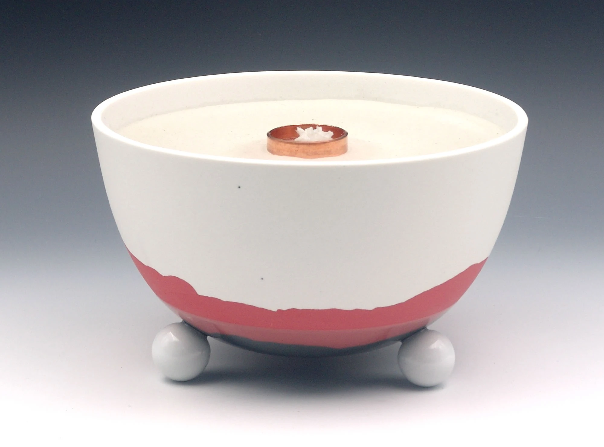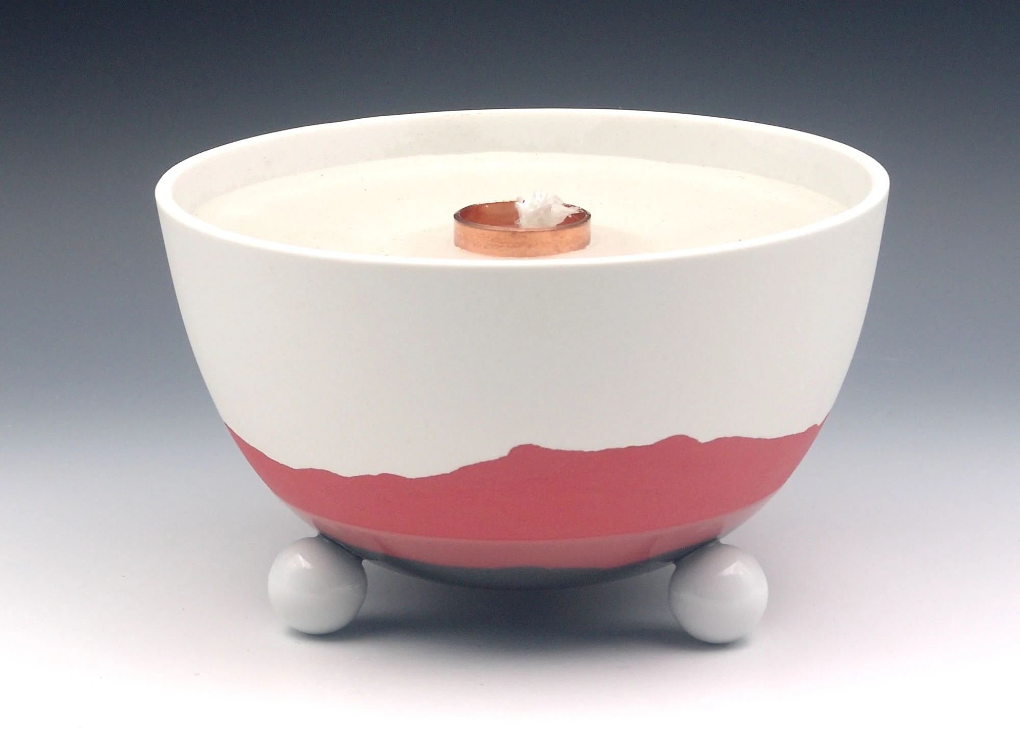 Die Schalen der Schmelzlichter werden nur im unteren Bereich teil glasiert, durch den Feinschliff im oberen Bereich entsteht eine seidenmatte Oberfläche. Das sinnvolle Zusammenspiel von Porzellan-Ästhetik und Brenner-Funktion mit einer lebhaften Flamme spricht alle Sinne an.