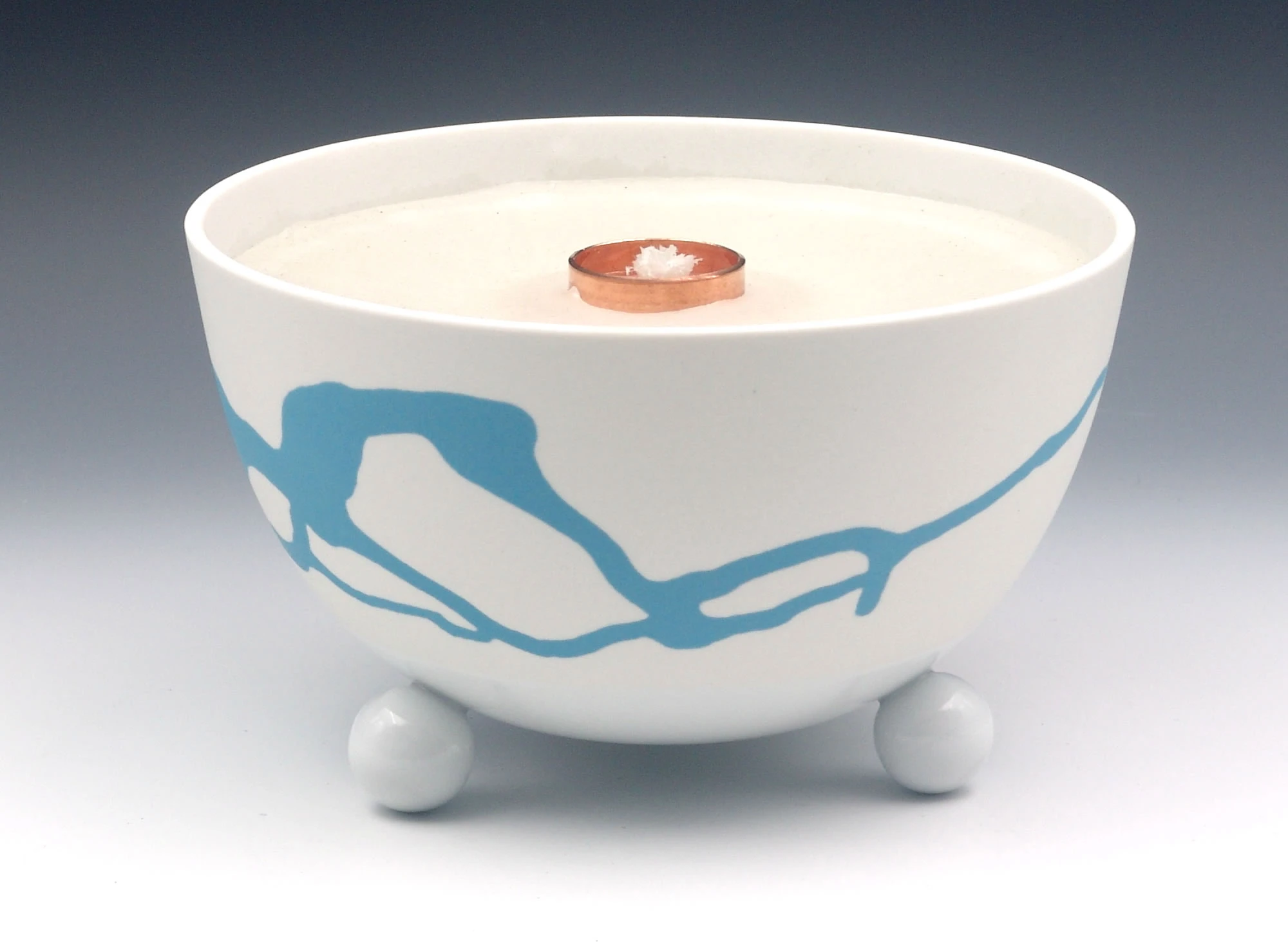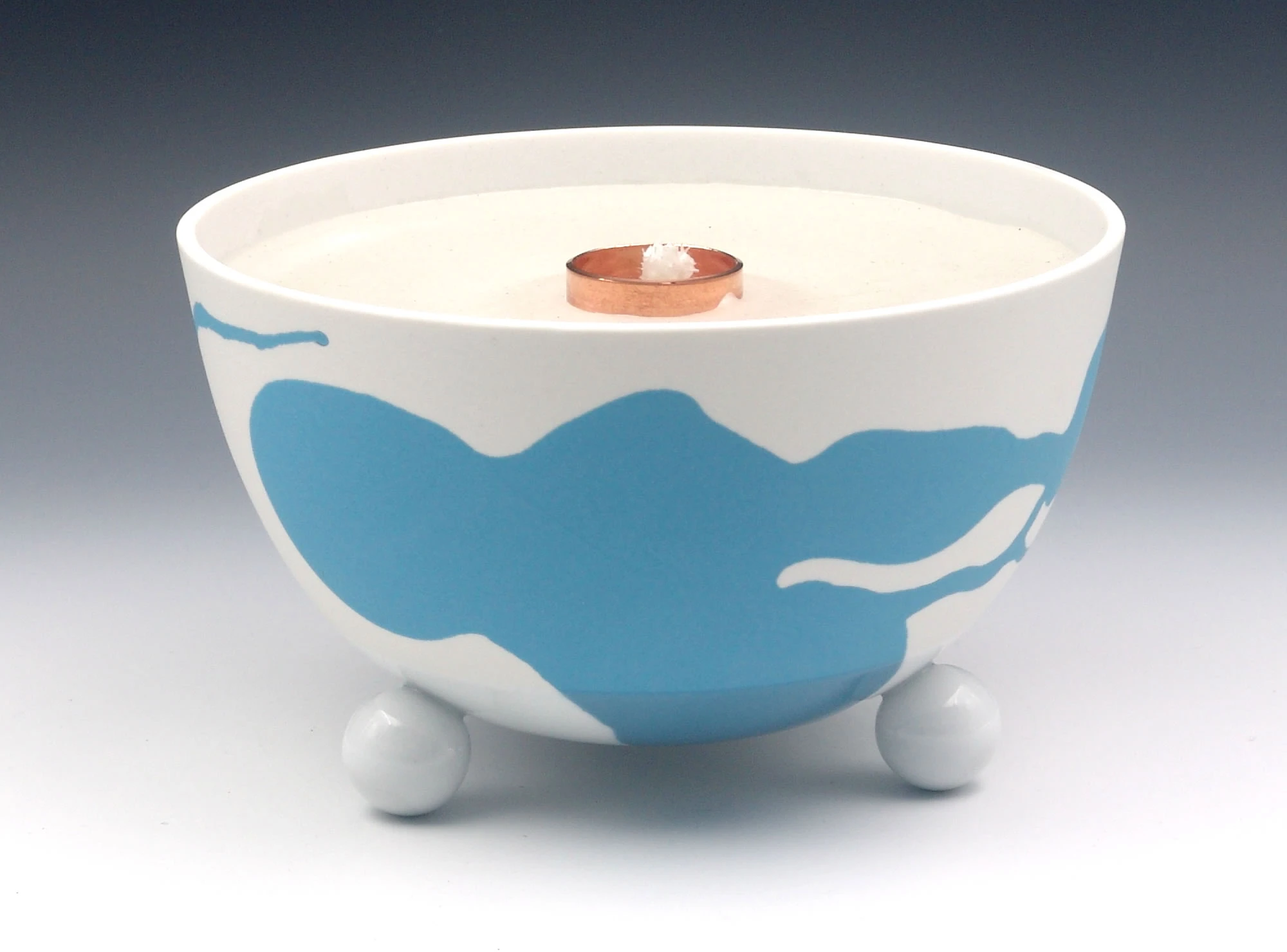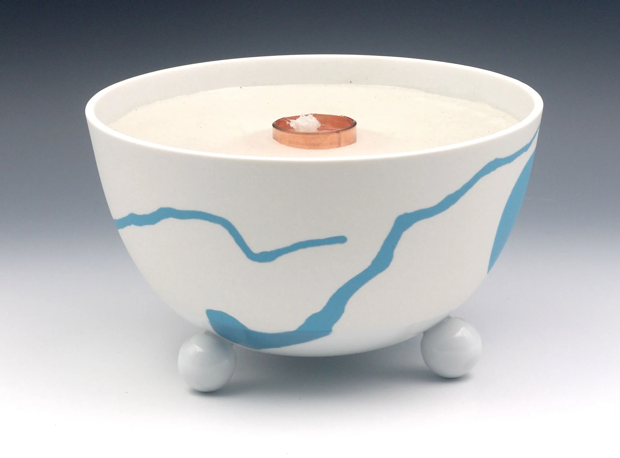 Die Schalen der Schmelzlichter werden nur im unteren Bereich teil glasiert, durch den Feinschliff im oberen Bereich entsteht eine seidenmatte Oberfläche. Das sinnvolle Zusammenspiel von Porzellan-Ästhetik und Brenner-Funktion mit einer lebhaften Flamme spricht alle Sinne an.