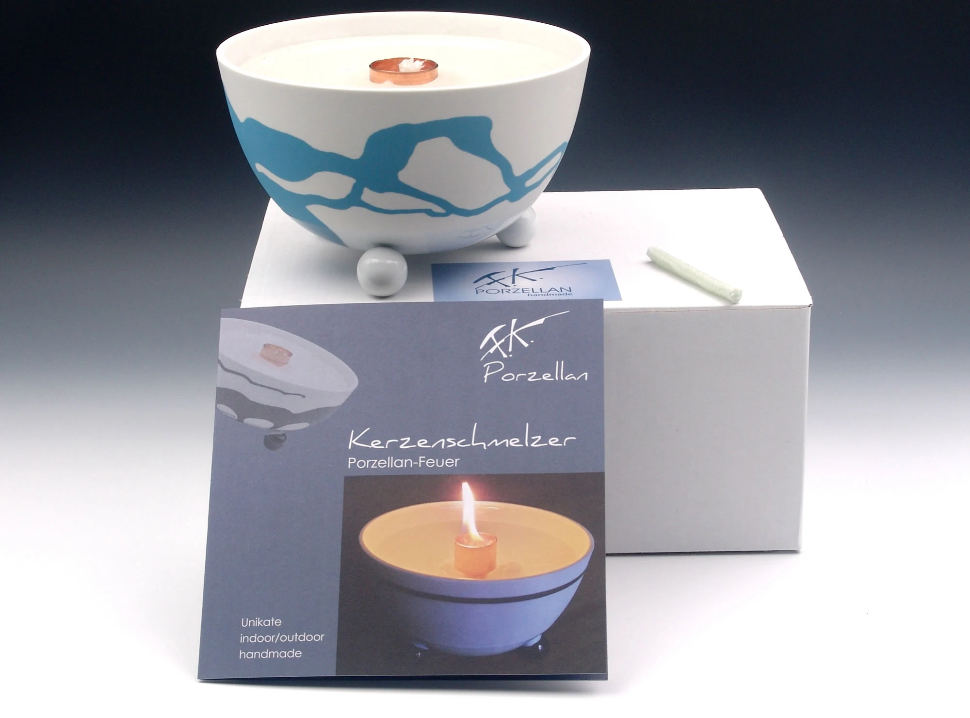 Schmelzlicht aus edlem Porzellan für drinnen und draußen