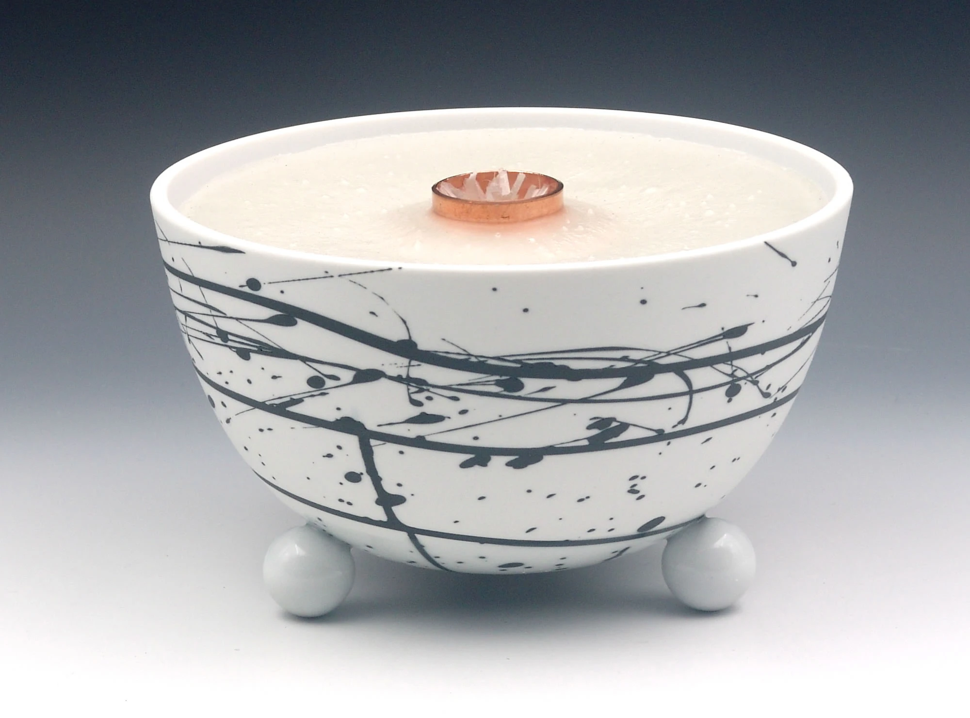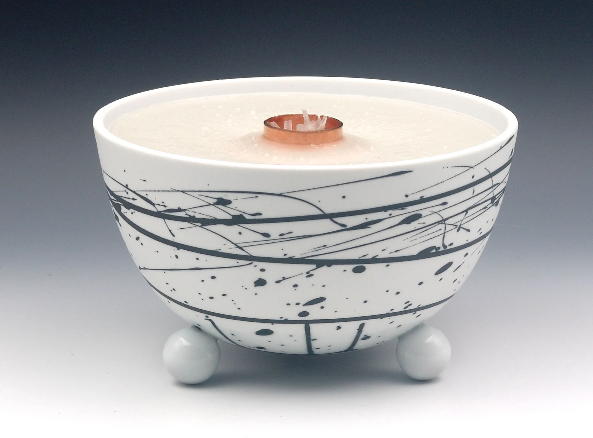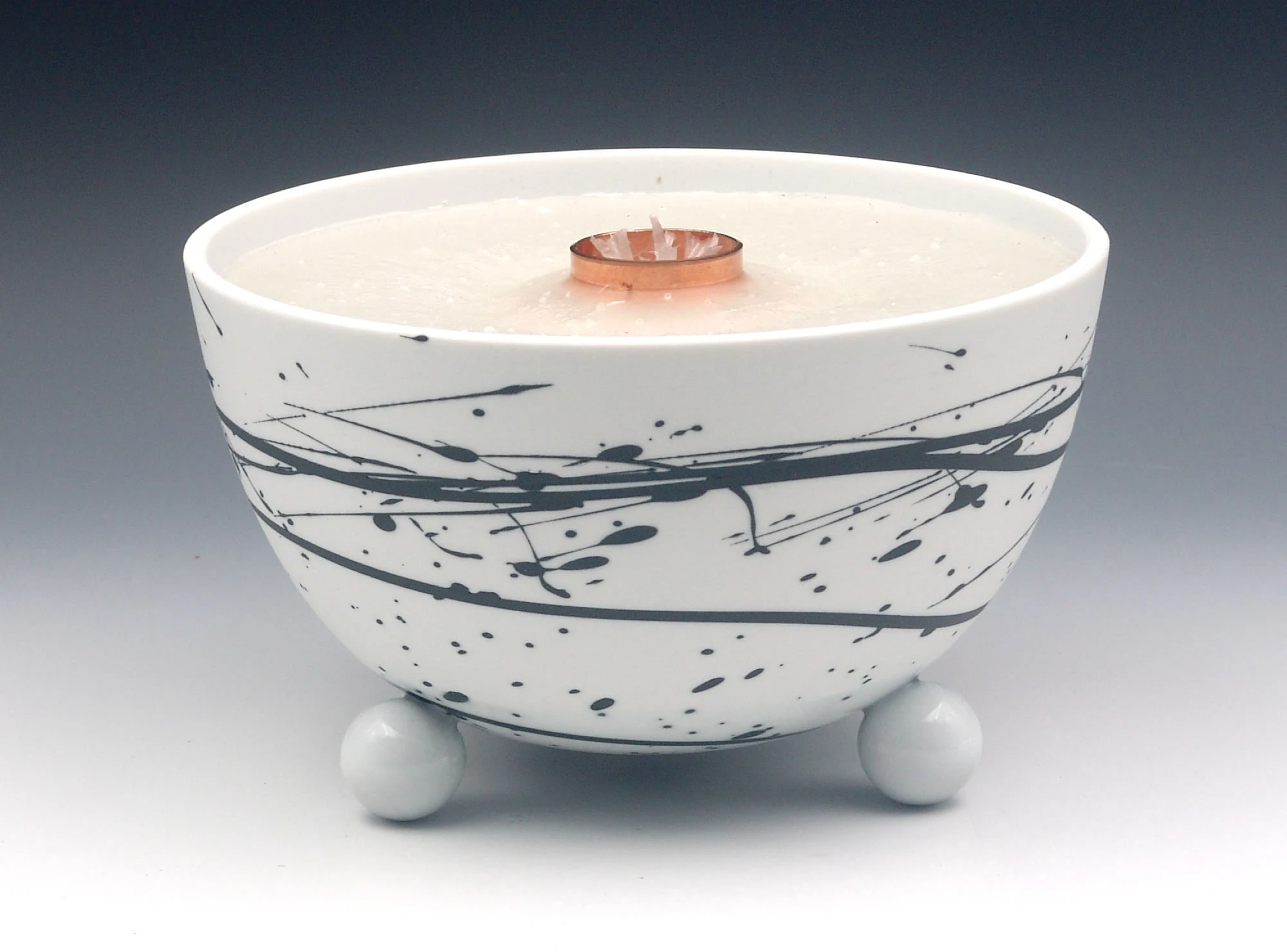 Die Schalen der Schmelzlichter werden nur im unteren Bereich teil glasiert, durch den Feinschliff im oberen Bereich entsteht eine seidenmatte Oberfläche. Das sinnvolle Zusammenspiel von Porzellan-Ästhetik und Brenner-Funktion mit einer lebhaften Flamme spricht alle Sinne an.
