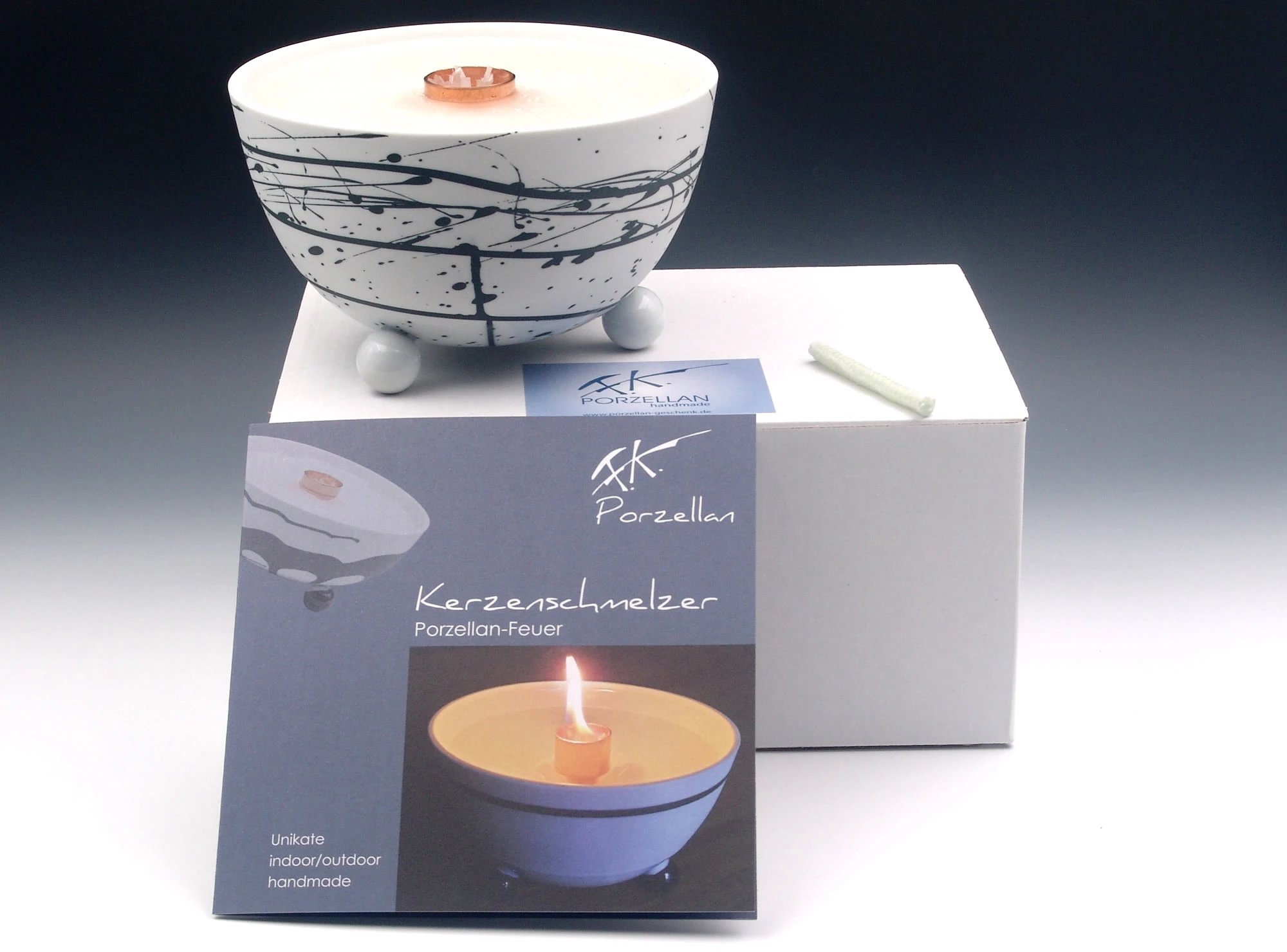 Schmelzlicht aus edlem Porzellan für drinnen und draußen