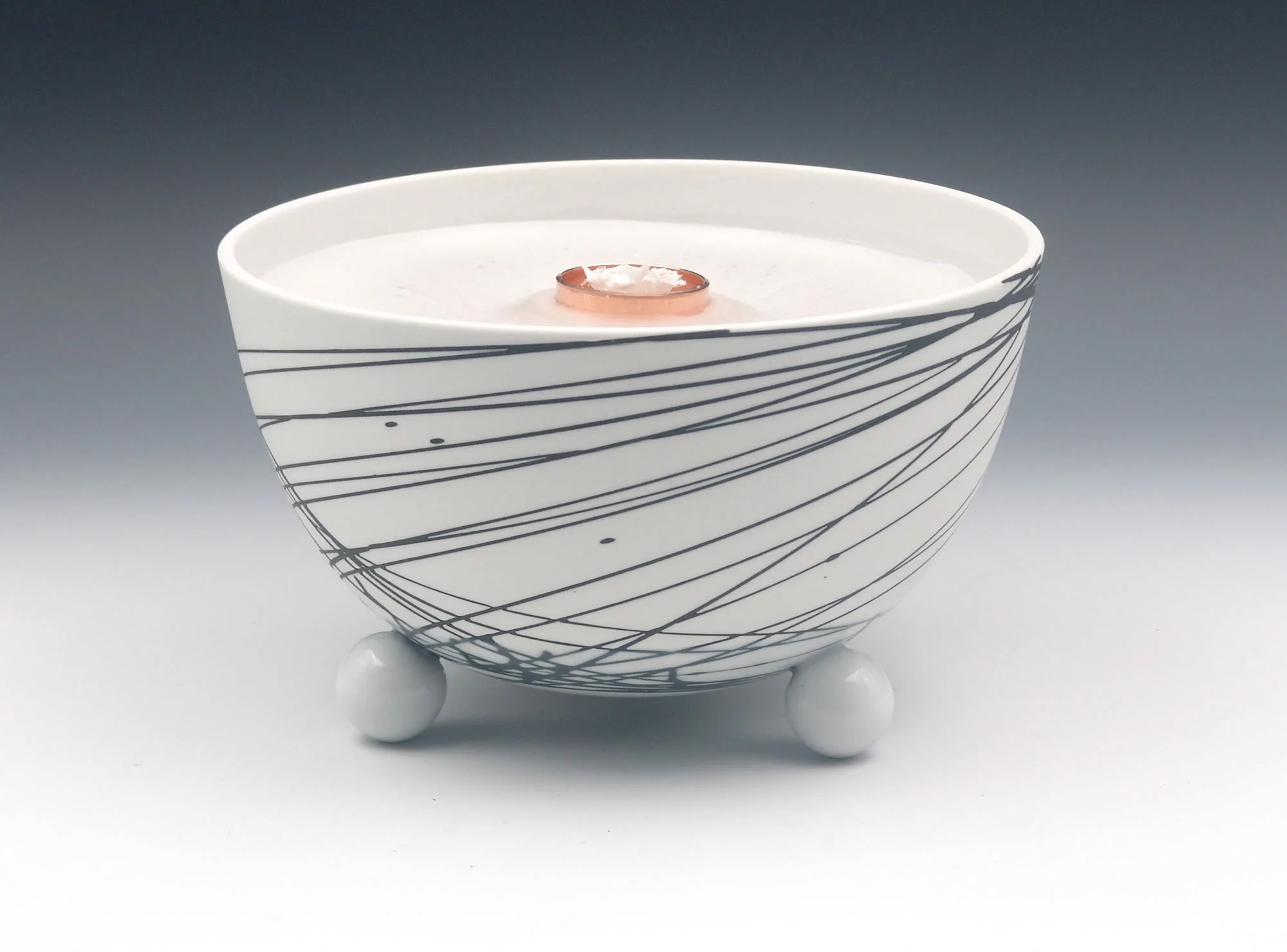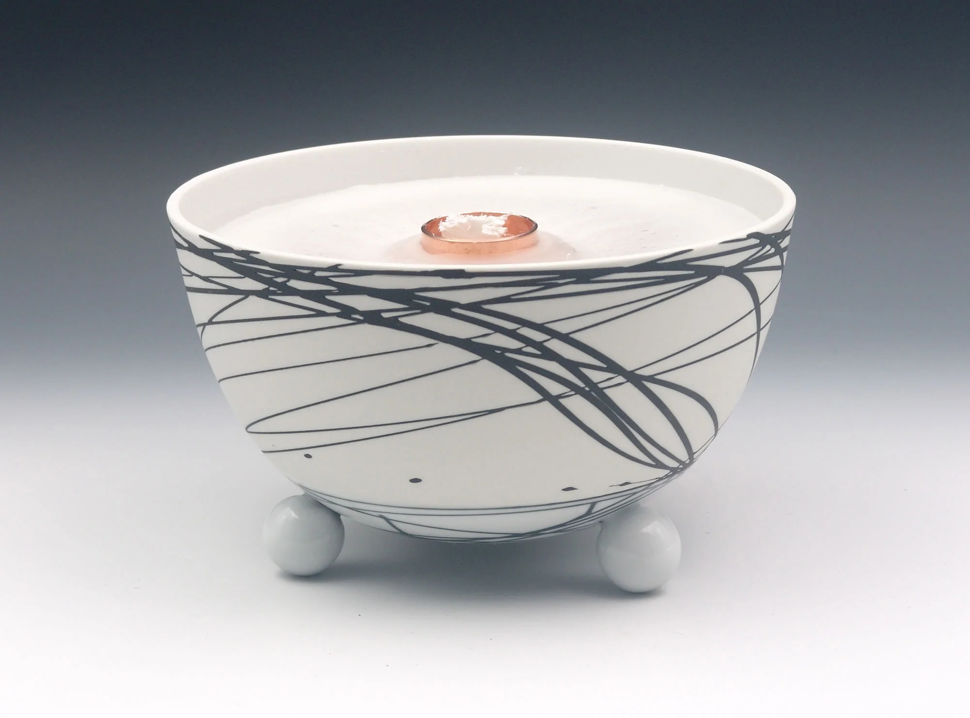 Die Schalen der Schmelzlichter werden nur im unteren Bereich teil glasiert, durch den Feinschliff im oberen Bereich entsteht eine seidenmatte Oberfläche. Das sinnvolle Zusammenspiel von Porzellan-Ästhetik und Brenner-Funktion mit einer lebhaften Flamme spricht alle Sinne an.