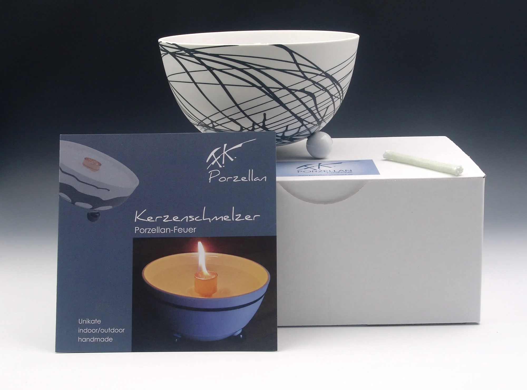 Schmelzlicht aus edlem Porzellan für drinnen und draußen