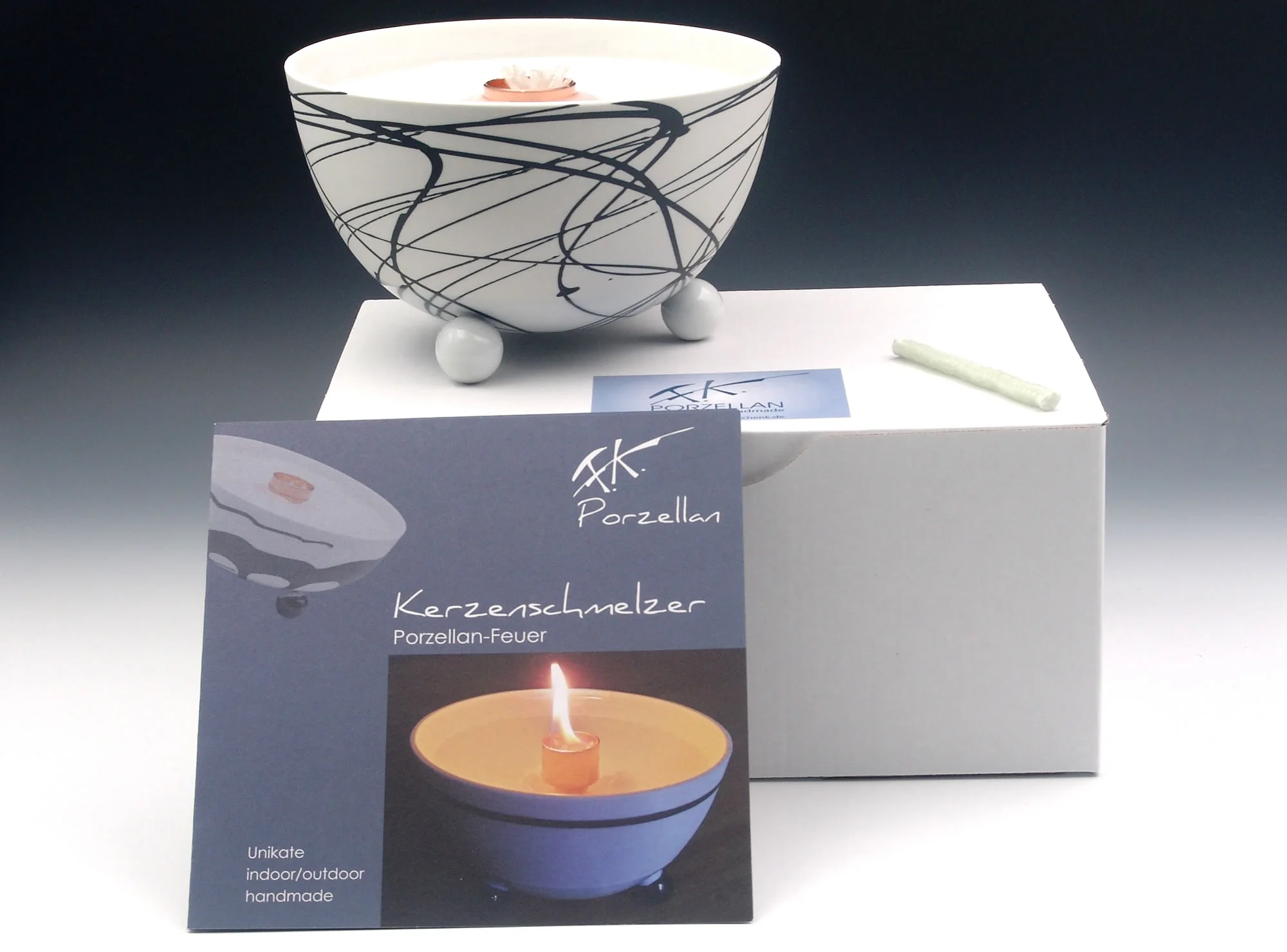 Schmelzlicht aus edlem Porzellan für drinnen und draußen